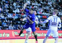 Машката ракометна репрезентација на Македонија пред неколку минути го стартуваше првиот натпревар на Европското првенство во Австрија, Норвешка и Шведска, а ривал е селекцијата на Украина. Откако Дејан Манасков промаши во првиот напад за нашата репрезентација, ниту Украинците не реализираа, па ние го отворивме реузлтатот. Нашето лево крило во една полуконтра, иако беше паднат на земја и со играч на грбот, сепак успеа да го совлада голманот на Украинците, Генадиј Комок.