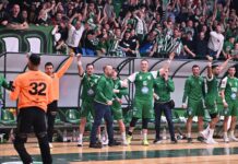 Ракометарите на Вардар го диктираат темпото на натпреварот против Фленсбург во првиот дел и водат најчесто со два три гола разлика. Во финишот на полувремето во игра влезе Марко Кизиќ и забележа неколку одлични интервенции. Меѓу нив и оваа против довчерашниот соиграч Домен Сикошек Пелко...