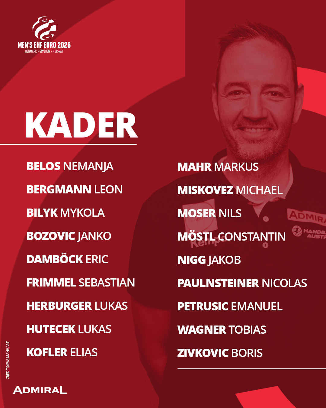 Селекторот на машката репрезентација на Австрија, Икер Ромеро, го објави скратениот список на ракометари пред Европското првенство во Данска, Шведска и Норвешка.
