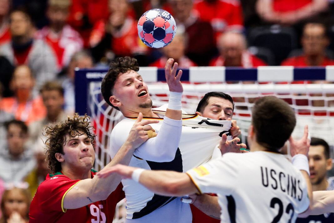 Селекцијата на Германија ја совлада Португалија со 32-30 и направи крупен чекор кон полуфиналето на Европското првенство во Данска, Шведска и Норвешка. Иако Португалците беа во егал најголем дел од мечот, во неколку наврати и водеа, сепак во финишот „панцирите“ ја имаа контролата на теренот.