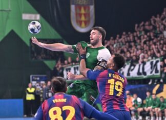Публиката во салата „Боро Чурлевски“ повторно до громогласен аплауз го награди Никола Митревски за неговата пожртвувана одбрана, со „пантерски скок“ спасувајќи ја сопствената мрежа на мечот Еурофарм Пелистер - Барселона. Гостите победија со 34-30,...
