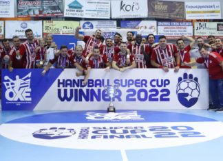 Грчкиот шампион Олимпијакос го освои првиот трофеј во новата сезона, откако во Суперкупот на Грција славеше против освојувачот на домашниот Куп од минатата сезона, тимот на Пилаја, со резултат 30:24 (16:12).