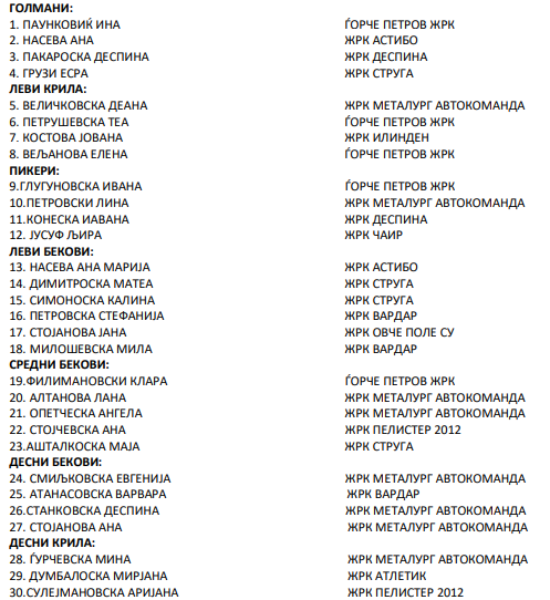 Селекторот на женската пионерска репрезентација, Славиша Димитријески, објави список на ракометарки на кои ќе смета во претстојната ЕХФ недела.
