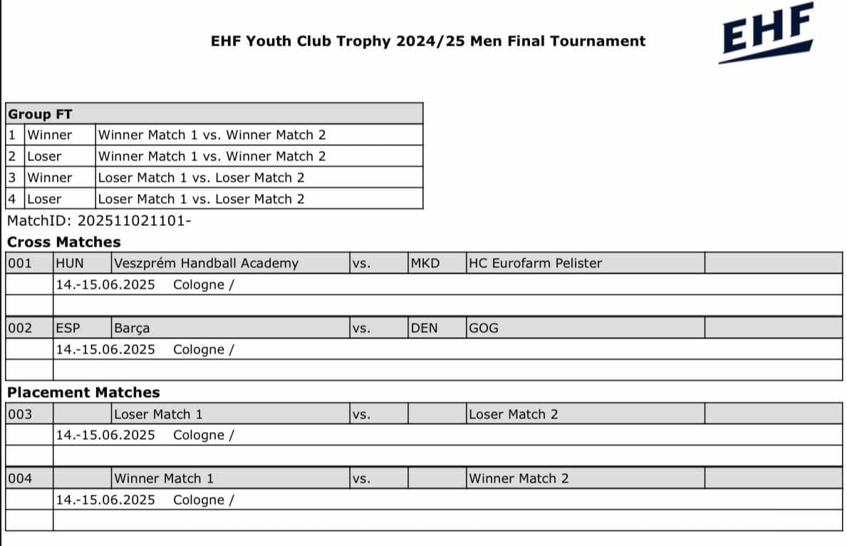 Европската ракометна федерација иако најави дека полуфиналните двојки на првото издание на завршниот турнир во младинската Лига на шампиони ќе се формира по костурот 1-4/2-3, сепак нема да биде така.