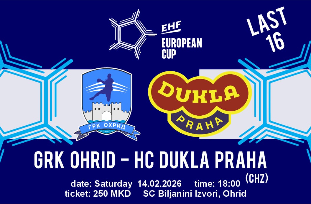 Натпреварот меѓу Охрид и Дукла Прага се игра на 14 февруари со почеток во 18:00 часот во СРЦ „Билјанини Извори“.