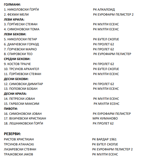 Кузманоски ќе смета на 18 ракометари, сите од домашното првенство, а во споредба со ЕМОФ ќе ги нема двајцата интернационалци, Андреја Угреновиќ и Милош Стојановиќ.