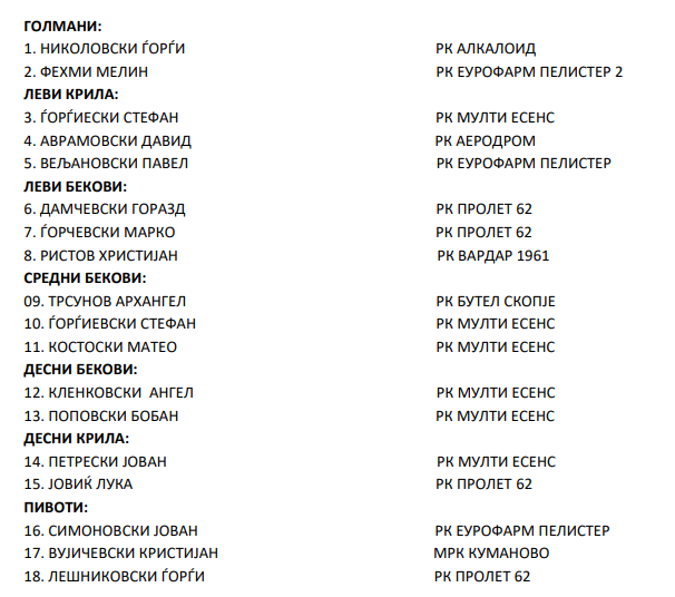 Селекторот на машката кадетска репрезентација на Македонија, Горан Кузманоски, објави список на ракометари за престојниот собир.