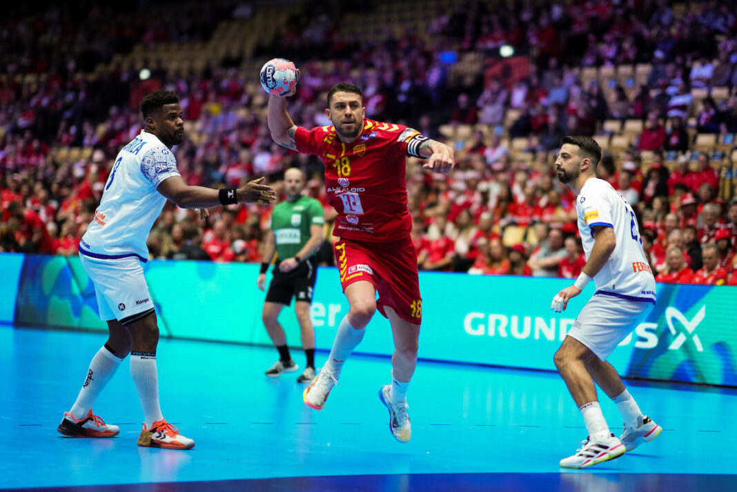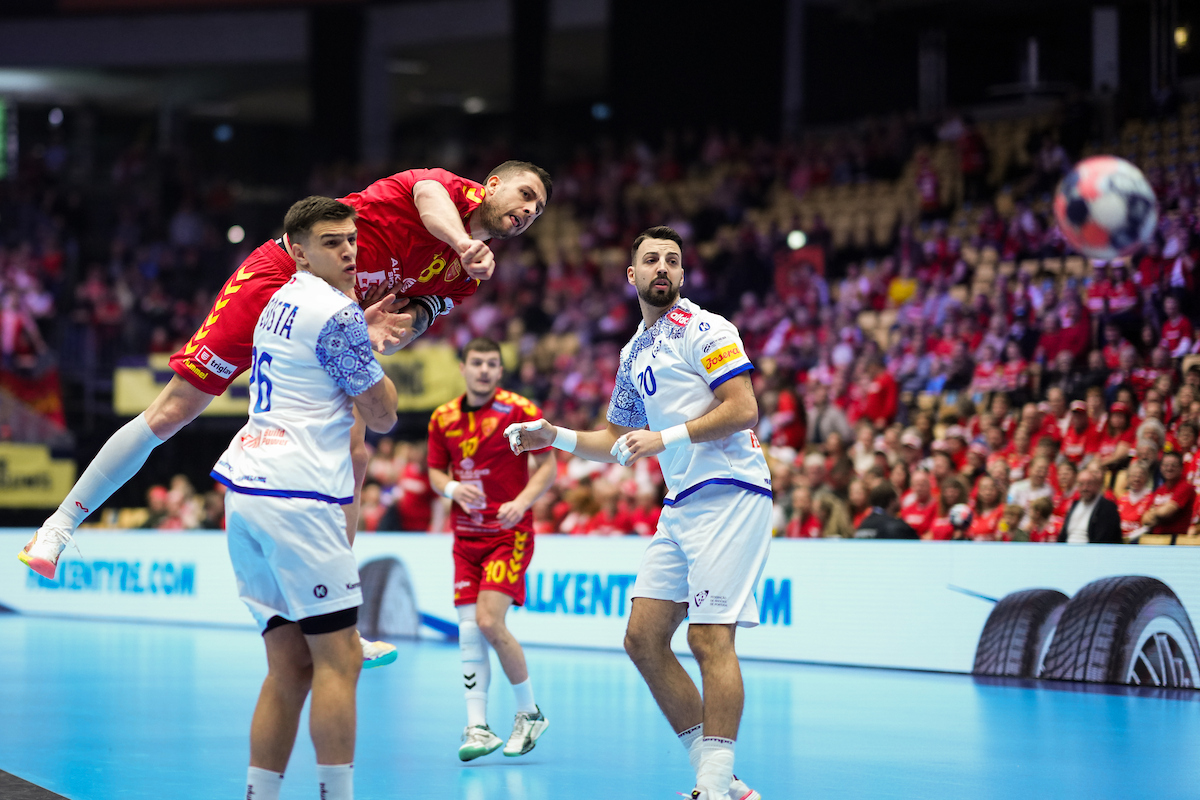 Македонија има два гола негатива на полувреме против селекцијата на Португалија, 15-13. Македонската селекција беше рамноправен и поквалитетен противник во првиот дел, но двете исклучувања во составот на Македонија и црвениот картон на Маркоски во 15. минута им овозможија на Португалците да ја контролираат играта и резултатот.