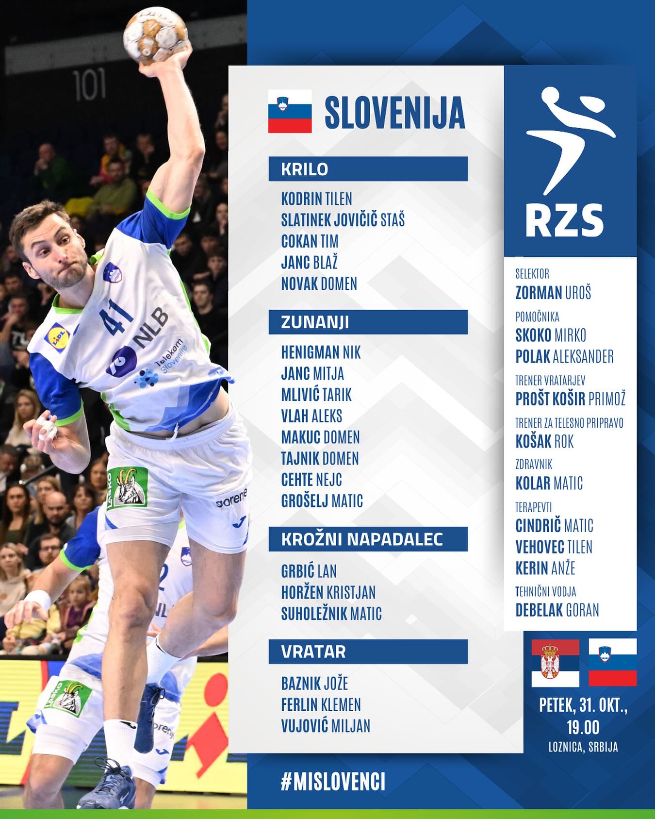 Селекторот на машката репрезентација на Словенија, Урош Зорман, го објави списокот на ракометари на кои ќе смета за претстојната ЕХФ недела.