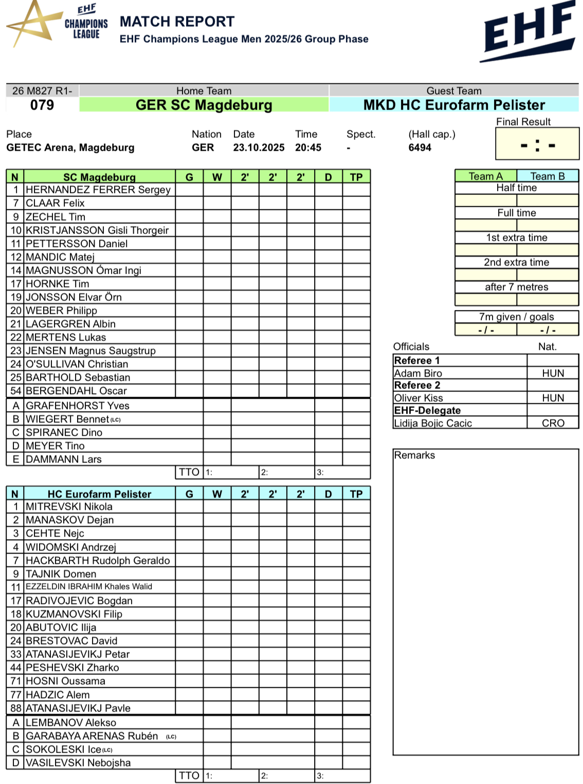 Европската ракометна федерација ги објави составите на Магдебург и Еурофарм Пелистер за пресметката во Лигата на шампионите.