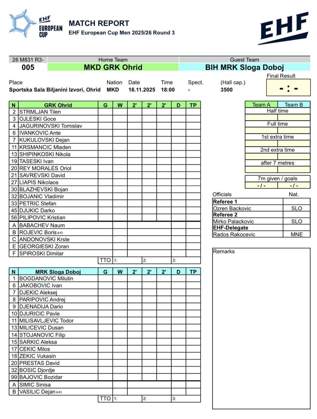 Охрид, по елиминацијата на Баку во второто коло со 50 голови разлика, сега има потежок предизвик во босанската екипа Слога Добој во ЕХФ Европскиот Куп.