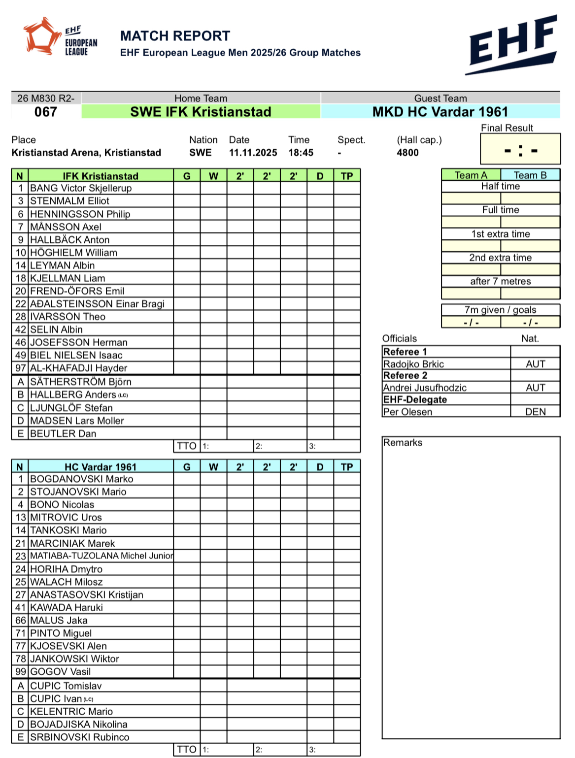 ПОЗНАТИ СОСТАВИТЕ: Вардар без двајца важни играчи во Шведска, се враќаат Кавада и Пинто
