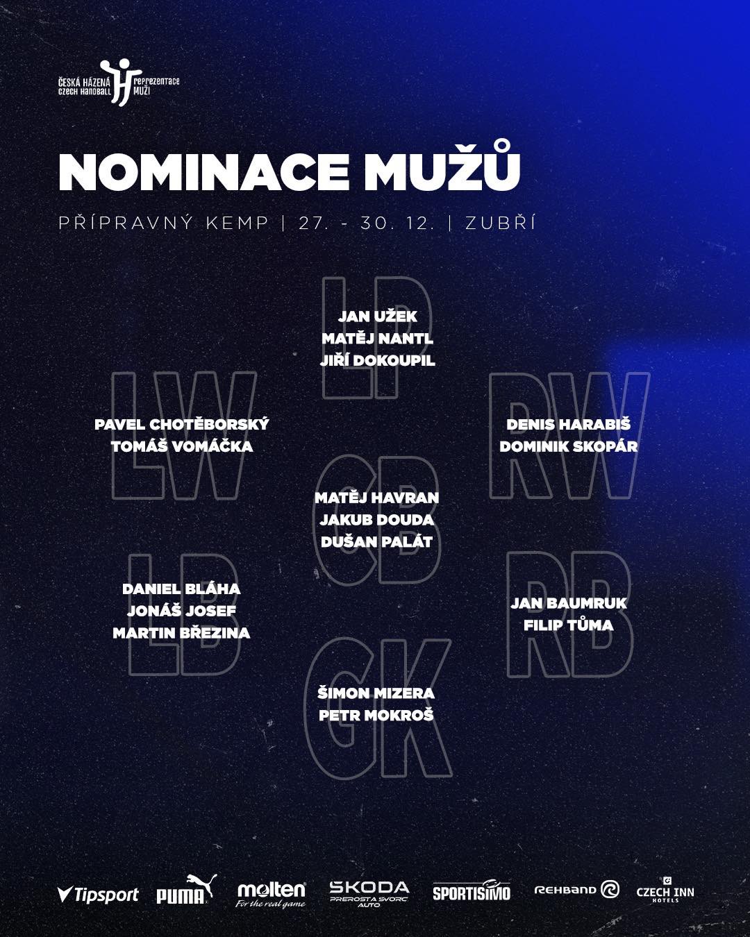 Селекторот на машката репрезентација на Чешка, Даниел Кубеш, го објави првиот список на ракометари за Европското првенство во Данска, Шведска и Норвешка.
