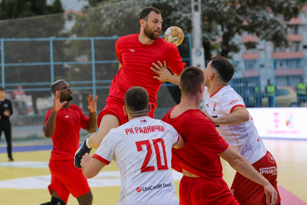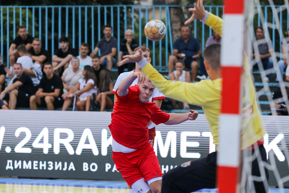 Српскиот тим поведе со 3-1 и ја одржуваше таквата разлика петнаесетина минути. Но капитенот Симиќ и засилувањето Стојановски успеаја да погодат за 7-7. Потоа следуваше одлична серија на голманот Печурица и кавадарчани ја преземаа контролата.