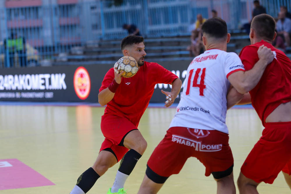 Беше 16-14 на стартот на второто полувреме, но гостинскиот капитен Станојев на два пати казни грешки на кавадарчани за реми, 16-16. Тренерот Грчевски им даваше шанса на сите ракометари, па заиграа и Лазов, Мијушковиќ, Тиквеш се одлепи на плус три, 19-16.