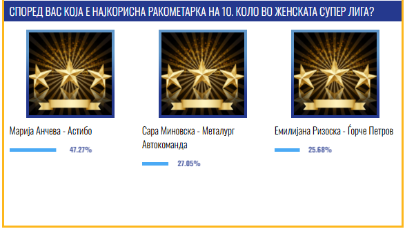 Во конкуренција за ѕвезда на 10. коло беа уште и членките на Металург Автокоманда и Ѓорче Петров, Сара Миновска и Емилијана Ризоска.