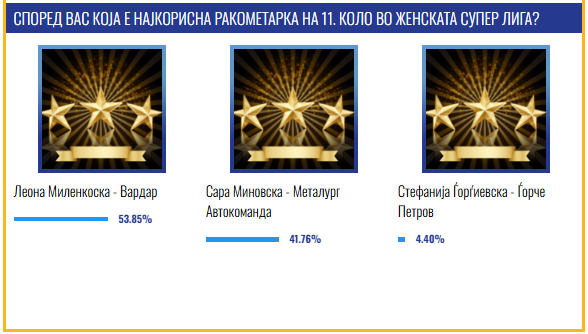 Во конкуренција за ѕвезда на 11. коло беа уште и членките на Металург Автокоманда и Ѓорче Петров, Сара Миновска и Стефанија Ѓорѓиевска.