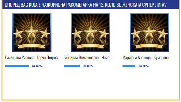 Левото крило на Ѓорче Петров, Емилијана Ризоска, го доби признанието за најкорисен играч, односно ѕвезда на 12. коло во Супер женската лига.