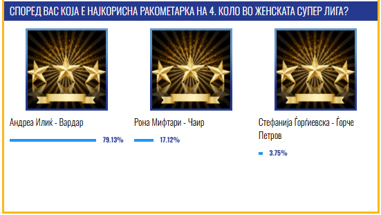 Ракометарката на Вардар, Андреа Илиќ, го доби признанието за најкорисен играч, односно ѕвезда на 4. коло во Супер женската лига.